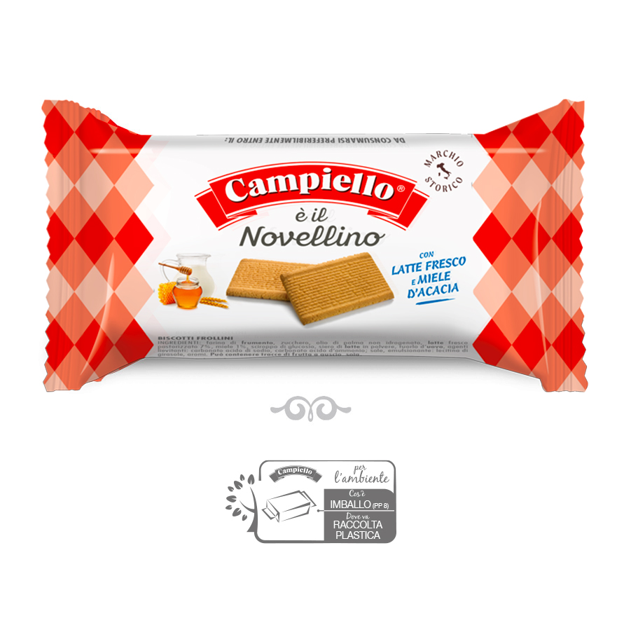 The historic Novellino with fresh milk and fine acacia honey has always been the favourite of Italians. All the aroma of traditional shortbread with an incomparable taste, it will right there with you throughout the day, thanks to the handy individual portion!